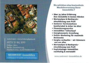 DEAL DES MONATS: Massiver Bungalow mit Vollkeller und 4+2 Zimmern zusätzlichen 2 Gäste-Apartments in Lichtenow – Ihr Zuhause im Grünen nahe Berlin. Sichern Sie sich jetzt im Rahmen unseres HERBSTSALES diesen wertbeständigen Bungalow in Lichtenow, dem idyllischen östlichen Speckgürtel von Berlin! Dieses charmante Anwesen bietet mit 4 Zimmern und zusätzlich 2 Gäste-Apartments viel Platz für die ganze Familie oder flexible Nutzungsmöglichkeiten. Besonderheiten des Objekts Dieser massive Bungalow zeichnet sich durch seine solide Bauweise und den Vollkeller aus, der zusätzlichen Stauraum und Nutzfläche bietet. Die Beheizung erfolgt umweltfreundlich und effizient über eine moderne Luft- / Wasser-Wärmepumpe, die für niedrige Energiekosten sorgt und das Objekt zukunftssicher macht. Leben in Lichtenow Lichtenow besticht durch seine ruhige und naturnahe Lage, während die Nähe zum Berliner Ring eine hervorragende Anbindung an die Hauptstadt gewährleistet. Hier genießen Sie die Vorzüge des ländlichen Lebens, ohne auf die Infrastruktur und Freizeitmöglichkeiten der Metropole verzichten zu müssen. Dieses Angebot ist ideal, für alle, die ein großes Haus suchen, zusätzlichen Raum für Hobbys oder ein Homeoffice benötigen, oder die Möglichkeit der Vermietung von Gäste-Apartments in Betracht ziehen. Nutzen Sie die Gelegenheit dieses MONATSDEALS und vereinbaren Sie noch heute einen Besichtigungstermin! Interesse geweckt? Melden Sie sich bei uns für weitere Informationen oder eine persönliche Führung durch Ihr potenzielles neues Zuhause!